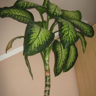 I have a Dieffenbachia.  It’s a tropical houseplant I’ve been growing for a few years now.  When I got it, it only had 4 leaves and stood maybe a foot high.  I stopped counting the leaves a long time ago.  It now stands three to four feet high.  Maybe I should say “stood”.  I have recently learned a great deal about the plant’s nature and needs, which resulted in my cutting it almost in half.  Let me explain.